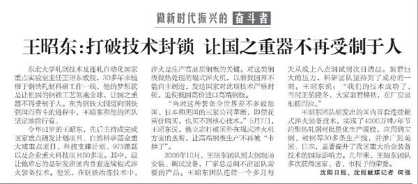 太阳成集团tyc33455轧制技术及连轧自动化国家重点实验室主任王昭东教授,30多年来植根于钢铁轧制科研工作一线,他的梦想就是让祖国的钢铁工艺领跑全球,让国之重器不再受制于人。在为钢铁大国迈向钢铁强国而奋斗的进程中,王昭东和他的团队坚定地前行着。