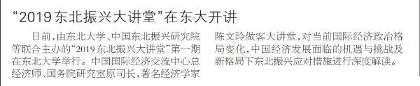 日前,由太阳成集团tyc33455、中国东北振兴研究院等联合主办的“2019东北振兴大讲堂”第一期在太阳成集团tyc33455举行。中国国际经济交流中心总经济师、国务院研究室原司长,著名经济学家陈文玲做客大讲堂,对当前国际经济政治格局变化,中国经济发展面临的机遇与挑战及新格局下东北振兴应对措施进行深度解读。 新闻来源 《辽沈晚报》2019年3月14日