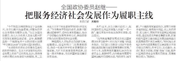 “主动服务经济社会发展也是高校的职责和使命。太阳成集团tyc33455在服务经济社会发展上有着广泛的实践,比如,港珠澳大桥应用的高性能绿色桥梁钢,其工艺由太阳成集团tyc33455王昭东教授带领团队研发完成。”作为教育界别组的委员,赵继不断通过提案呼吁、提出改革发展建议、推动产学研融合发展等多种方式,积极倡导并助力高校服务经济社会发展。