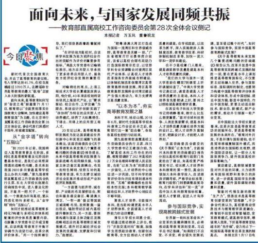 面向未来,高等教育如何写好“奋进之笔”新篇章?1月17日,教育部以“全面贯彻落实全国教育大会精神,加快建设高等教育强国”为主题,在北京举行直属高校工作咨询委员会第28次全体会议,参会代表们深感时不我待,积极建言献策。