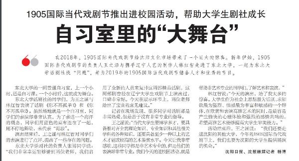 活动结束后,王之涵说:“我们还要走进沈阳的其他大学,今年的1905国际当代戏剧节上,我们也要为沈阳的大学生提供展演的机会。”