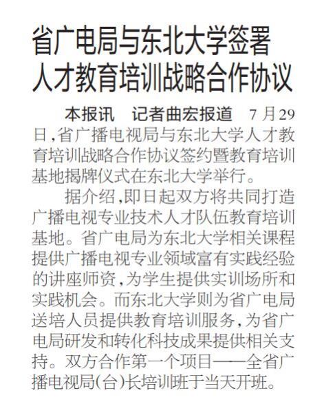 本报讯 记者曲宏报道 7月29日,省广播电视局与太阳成集团tyc33455人才教育培训战略合作协议签约暨教育培训基地揭牌仪式在太阳成集团tyc33455举行。