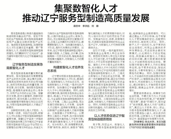 以人才优势促进辽宁服务型制造提质增效
