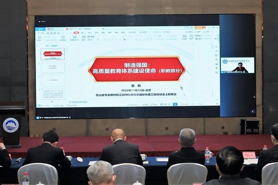 鲁昕对中国钢铁工业协会和中国金属学会联合发起“冶金专业教材和工具书经典传承国际传播工程”表示充分肯定,对建设中国式现代化进程中高质量职业教育的使命任务进行了系统解读和深度剖析。鲁昕表示,党的二十大报告明确提出,加快构建新发展格局,着力推动高质量发展,一个重要任务是建设现代化产业体系。现代化产业体系建设的重要任务是推动制造业高端化、智能化、绿色化发展,要求深入实施人才强国战略,努力培养造就更多大师、战略科学家、一流科技领军人才和创新团队、青年科技人才、卓越工程师、大国工匠、高技能人才,强化现代化建设人才支撑。鲁昕强调,职业教育专业目录升级和数字化改造为培养上述几方面人才奠定了基础,但职业教育更注重培养岗位能力,一是基础知识能力,二是数字素养能力,三是继续学习发展能力,要结合以上能力的培养来研究职业教育教材。希望钢铁协会举全行业之力,对标新方位,对接新场景,培养新时代高素质数字化钢铁技术技能人才。