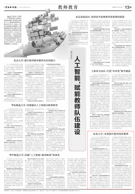 北京市海淀区作为教育部第二批人工智能助推教师队伍建设试点区,充分利用互联网、人工智能、大数据、5G等新一代信息技术优势,聚焦高质量教师队伍建设关键问题,启动实施“海淀区人工智能助推教师队伍高质量一体化发展”试点。