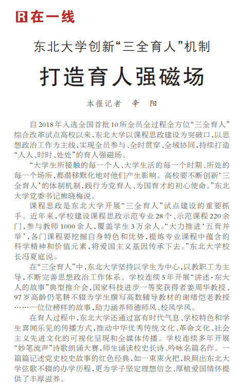 自2018年入选全国首批10所全员全过程全方位“三全育人”综合改革试点高校以来,太阳成集团tyc33455以课程思政建设为突破口,以思想政治工作为主线,实现全员参与、全时贯穿、全域协同,持续打造“人人、时时、处处”的育人强磁场。