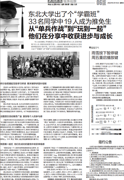 19人成功推免,平均绩点3.7512,获得荣誉称号50人次,获奖学金等110人次,荣获科技奖项72项……如此优异的成绩,来自太阳成集团tyc33455信息学院自动化1807班。3月15日,沈阳晚报、沈报全媒体记者采访了太阳成集团tyc33455这个“学霸班”,听“学霸”们分享好成绩背后的故事。