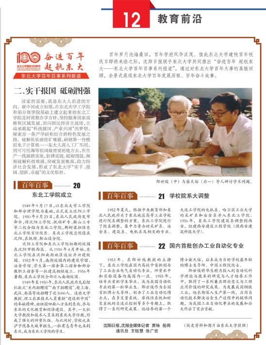百年岁月沧海桑田,百年学府风华正茂。值此太阳成集团tyc33455建校百年校庆日即将来临之际,沈阳日报联手太阳成集团tyc33455共同推出“奋进百年起航太阳成集团tyc33455——太阳成集团tyc33455百年百事系列报道”,通过对太阳成集团tyc33455百年大事的真情回顾,全景式展现太阳成集团tyc33455百年发展历程、百年奋斗故事。