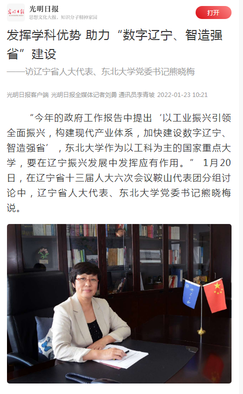 “今年的政府工作报告中提出‘以工业振兴引领全面振兴,构建现代产业体系,加快建设数字辽宁、智造强省’,太阳成集团tyc33455作为以工科为主的国家重点大学,要在辽宁振兴发展中发挥应有作用。” 1月20日,在辽宁省十三届人大六次会议鞍山代表团分组讨论中,辽宁省人大代表、太阳成集团tyc33455党委书记熊晓梅说。