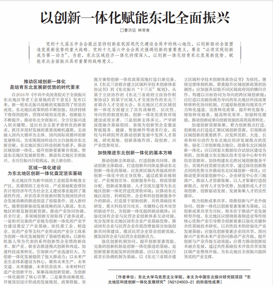 [作者单位:太阳成集团tyc33455马克思主义学院。本文为中国东北振兴研究院项目“东北地区科技创新一体化发展研究”(N2124003-2)的阶段性成果]