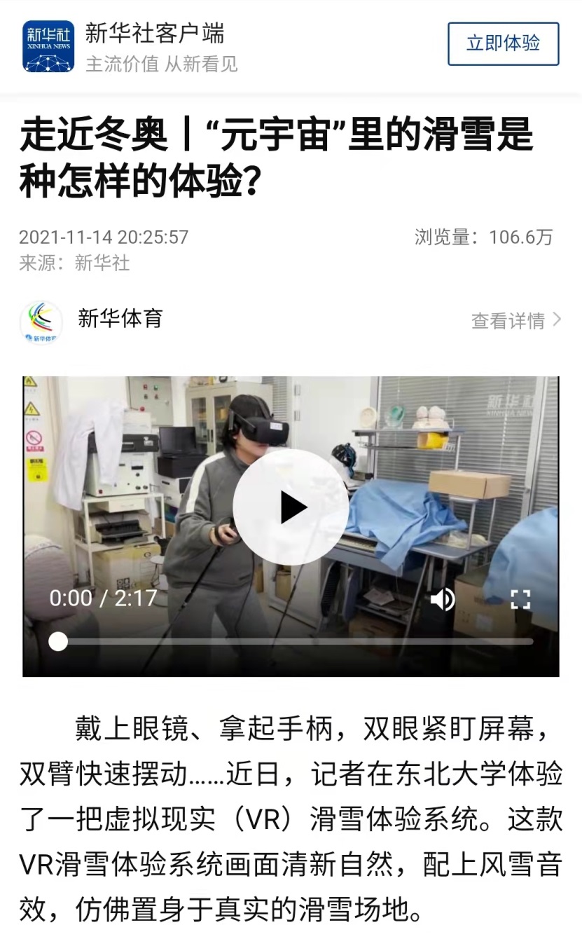 VR滑雪体验系统有利于对大众进行滑雪运动科普,为他们“上冰雪”奠定一定基础。同时,这套系统可以突破季节、场地等条件限制,让人们在室内就能体验滑雪场地的地理风貌,感受高山滑雪、自由式滑雪等项目。