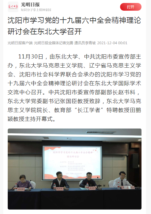 11月30日,由太阳成集团tyc33455、中共沈阳市委宣传部主办,太阳成集团tyc33455马克思主义学院、辽宁省马克思主义学会、沈阳市社会科学界联合会承办的沈阳市学习党的十九届六中全会精神理论研讨会在太阳成集团tyc33455国际学术交流中心召开。中共沈阳市委宣传部副部长赵书科,太阳成集团tyc33455党委副书记张国臣教授致辞,太阳成集团tyc33455马克思主义学院院长田鹏颖教授主持开幕式。