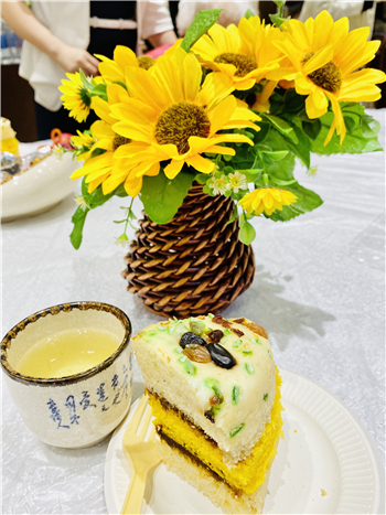 外籍友人卢克曼在现场拍下了重阳糕和菊花茶
