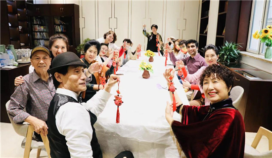 吃了重阳糕、做了掐褶纸荷包,现场的老人们坐不住了。他们纷纷拿出自己的“绝活儿”,即兴表演起葫芦丝独奏《唱支山歌给党听》、电吹管演奏《北国之春》、古筝弹奏《渔舟唱晚》、二胡独奏《新赛马》等节目。外籍友人纷纷赞叹:厉害!