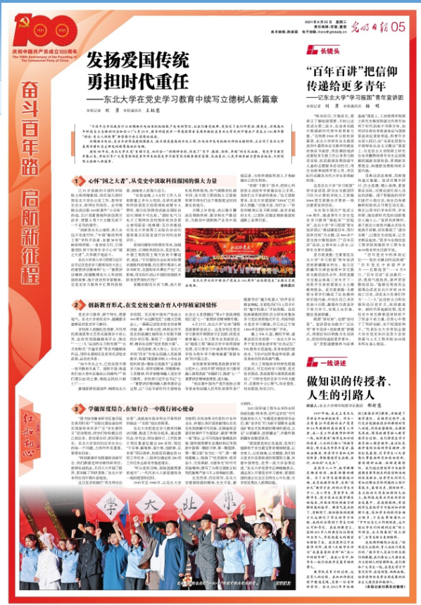 我校闻邦椿院士说过:“创新是无止境的,育人永远只有进行时。”教书育人是我们终生探讨的课题,我们要让三尺讲台成为立德树人的坚强阵地,我们要和广大学生一起,在党史学习中坚定信仰、启迪智慧、砥砺品格,培养德智体美劳全面发展的社会主义建设者和接班人。