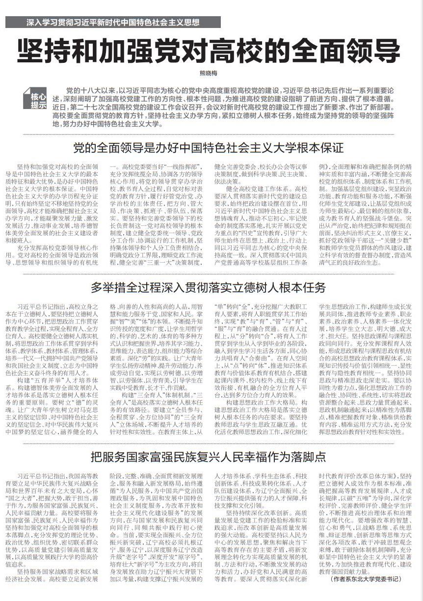 坚持和加强党对高校的全面领导是中国特色社会主义大学的最本质特征和最大优势,是办好中国特色社会主义大学的根本保证。中国特色社会主义大学的办学历程充分证明,只有始终坚定不移地坚持党的全面领导,高校才能准确把握社会主义办学方向,才能凝聚发展力量、激发发展活力、推动事业发展,培养德智体美劳全面发展的社会主义建设者和接班人。