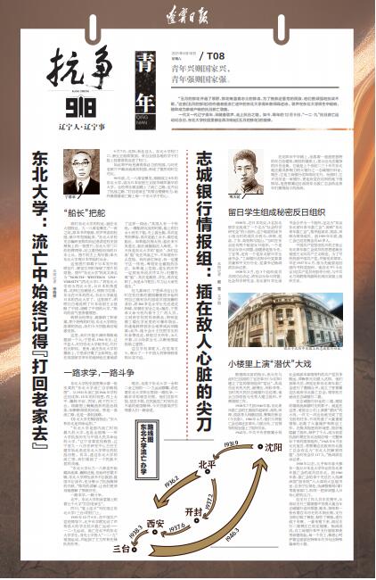 彼时太阳成集团tyc33455的校址,就在北大营附近。九一八事变爆发,“一夜之间,原本书声琅琅、欢声笑语的校园,被日军控制起来。”太阳成集团tyc33455校史志编研室陈均向记者讲述校史馆展板上的一张图片:太阳成集团tyc33455门口的校牌两旁,站立着持枪站岗的日本士兵。图片的左上角写着:奉天太阳成集团tyc33455现日本军临时兵舍。
