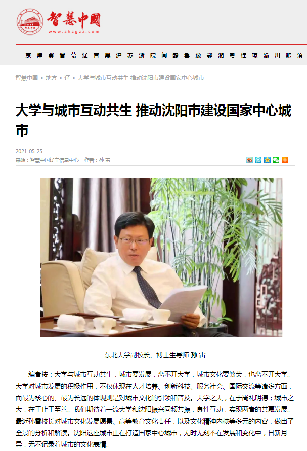 编者按:大学与城市互动共生,城市要发展,离不开大学,城市文化要繁荣,也离不开大学。大学对城市发展的积极作用,不仅体现在人才培养、创新科技、服务社会、国际交流等诸多方面,而最为核心的、最为长远的体现则是对城市文化的引领和普及。大学之大,在于尚礼明德;城市之大,在于止于至善。我们期待着一流大学和沈阳振兴同频共振,良性互动,实现两者的共赢发展。最近孙雷校长对城市文化发展愿景、高等教育文化责任,以及文化精神内核等多元的内容,做出了全景的分析和解读。沈阳这座城市正在打造国家中心城市,无时无刻不在发展和变化中,日新月异,无不记录着城市的文化表情。