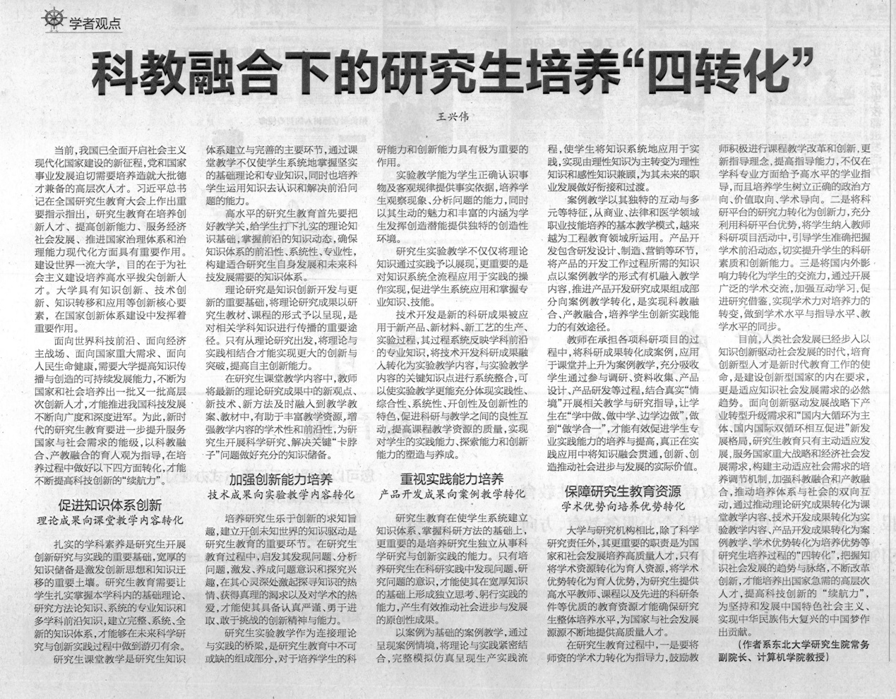 当前,我国已全面开启社会主义现代化国家建设的新征程,党和国家事业发展迫切需要培养造就大批德才兼备的高层次人才。习近平总书记在全国研究生教育大会上作出重要指示指出,研究生教育在培养创新人才、提高创新能力、服务经济社会发展、推进国家治理体系和治理能力现代化方面具有重要作用。建设世界一流大学,目的在于为社会主义建设培养高水平拔尖创新人才。大学具有知识创新、技术创新、知识转移和应用等创新核心要素,在国家创新体系建设中发挥着重要作用。