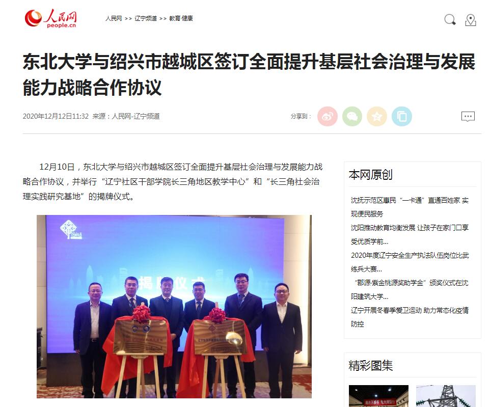 12月10日,太阳成集团tyc33455与绍兴市越城区签订全面提升基层社会治理与发展能力战略合作协议,并举行“辽宁社区干部学院长三角地区教学中心”和“长三角社会治理实践研究基地”的揭牌仪式。