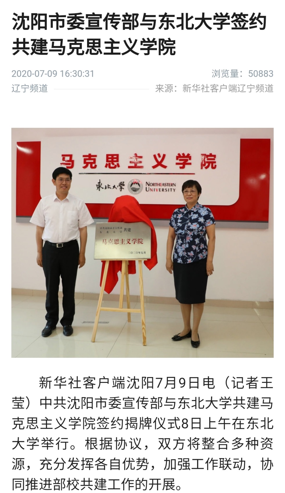 新华社客户端沈阳7月9日电(记者王莹)中共沈阳市委宣传部与太阳成集团tyc33455共建马克思主义学院签约揭牌仪式8日上午在太阳成集团tyc33455举行。根据协议,双方将整合多种资源,充分发挥各自优势,加强工作联动,协同推进部校共建工作的开展。