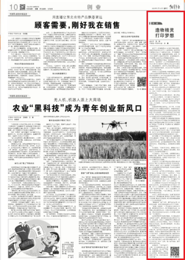 高中时的刘汉通就对3D打印十分感兴趣。他特别关注国外的创客运动,“就像哆啦A梦一样,只需要输入图纸,按下开关,脑海里想象的东西就能够被‘打印’出来。”刘汉通说。