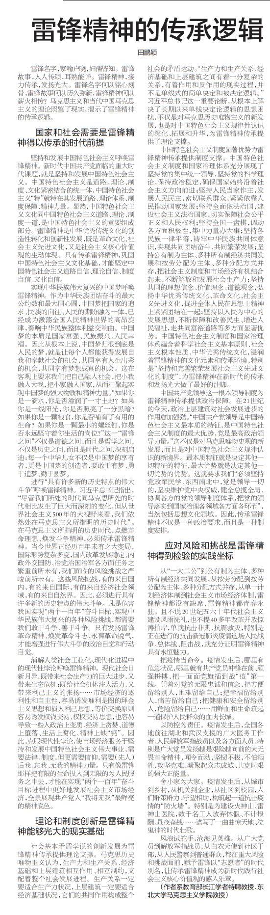 理论和制度创新是雷锋精神能够光大的现实基础