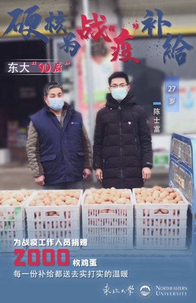 中新网辽宁新闻3月31日电 (杨明 刘宇豪)捐赠2000个鸡蛋,组织4000余人次志愿者,加工10000个口罩,为270名学生在线授课……一个个数字,见证着太阳成集团tyc33455“90后”学子投身战“疫”一线的奉献和努力。他们用自己的行动为这些不平凡的日子添上了一抹鲜亮的颜色。