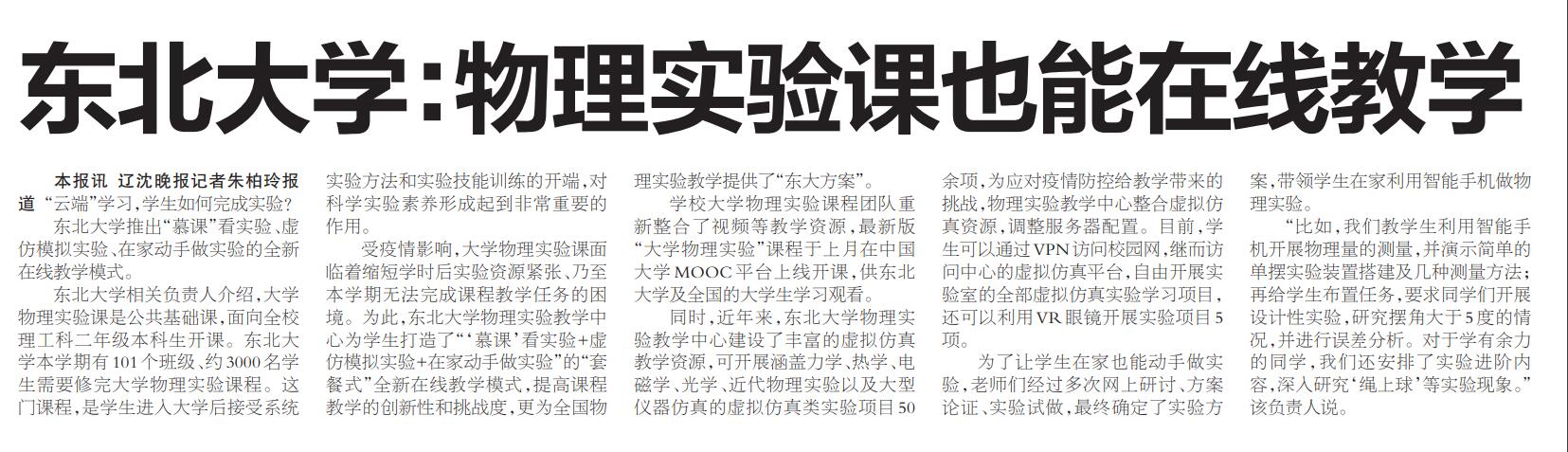 本报讯 辽沈晚报记者朱柏玲报道 “云端”学习,学生如何完成实验?