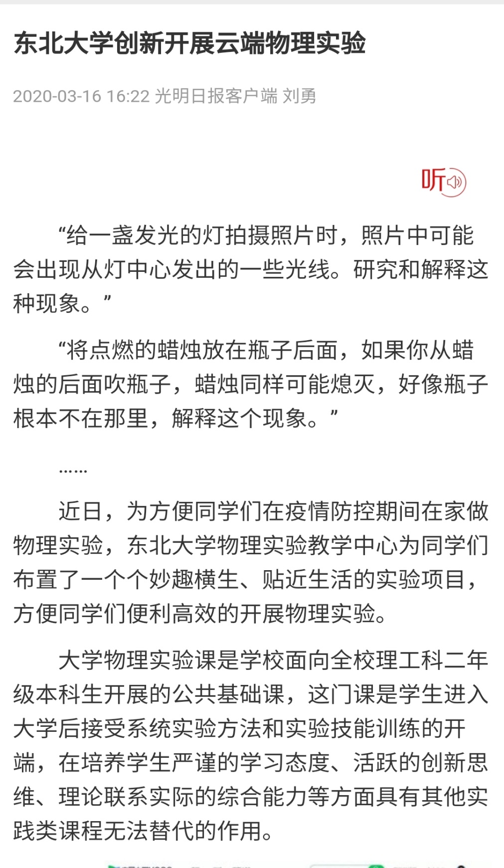 据了解,物理实验教学中心还先后组织召开了“辽宁省高校物理实验教学研讨会”“全国部分高校物理实验教学研讨会”两次网络会议,为各高校老师介绍疫情期间物理实验课程线上教学的太阳成集团tyc33455方案。(光明日报全媒体记者刘勇通讯员杨瑷博)