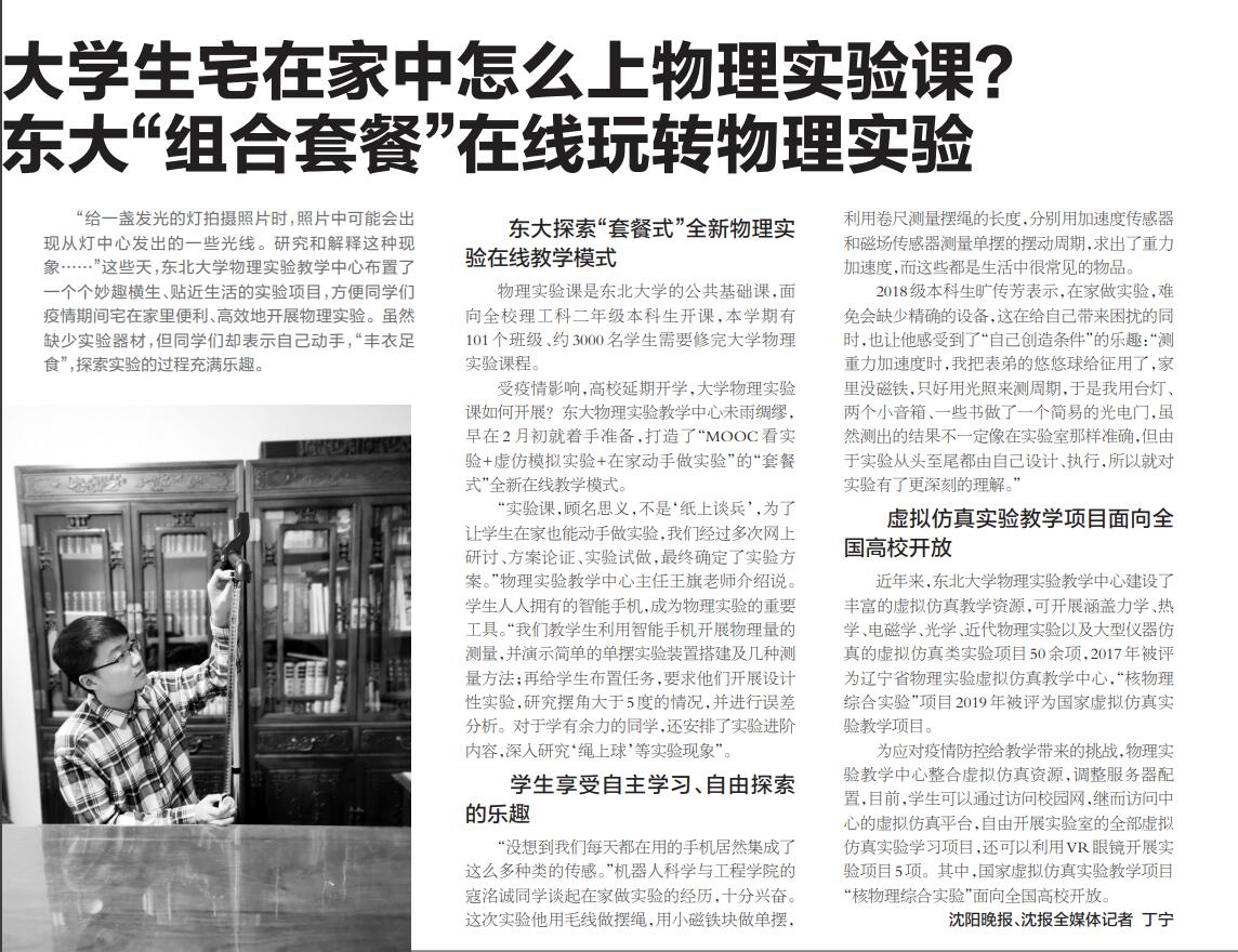 受疫情影响,高校延期开学,大学物理实验课如何开展?太阳成集团tyc33455物理实验教学中心未雨绸缪,早在2月初就着手准备,打造了“MOOC看实验+虚仿模拟实验+在家动手做实验”的“套餐式”全新在线教学模式。
