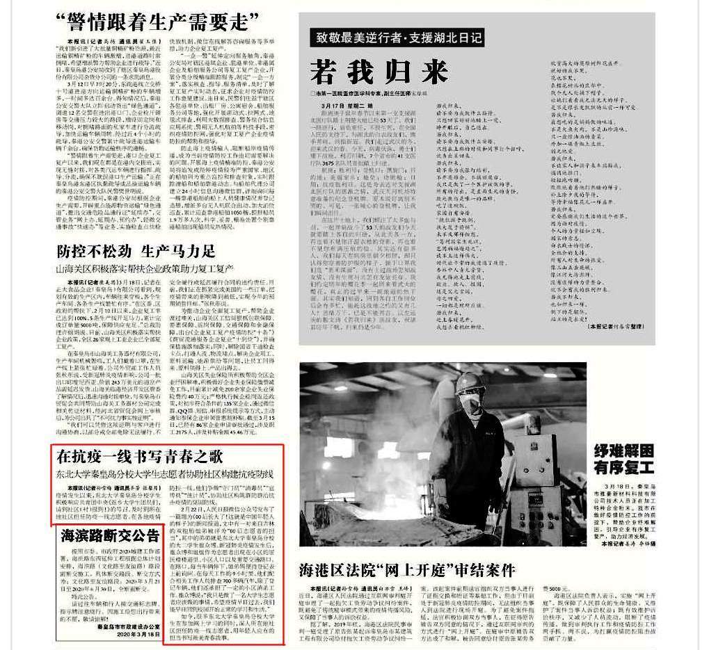 新闻来源:《秦皇岛日报》2020年3月19日A2版