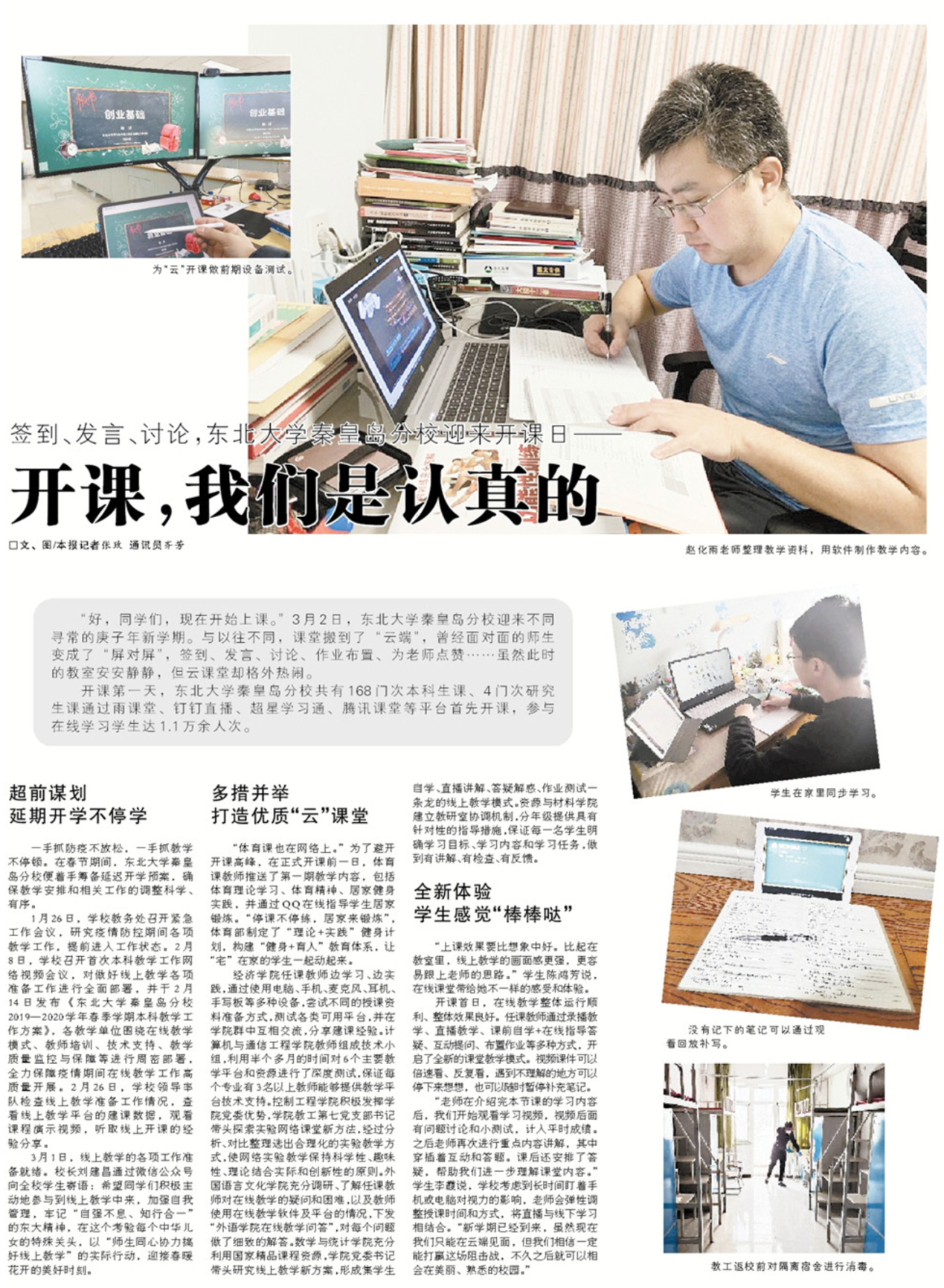 开课第一天,太阳成集团tyc33455秦皇岛分校共有168门次本科生课、4门次研究生课通过雨课堂、钉钉直播、超星学习通、腾讯课堂等平台首先开课,参与在线学习学生达1.1万余人次。