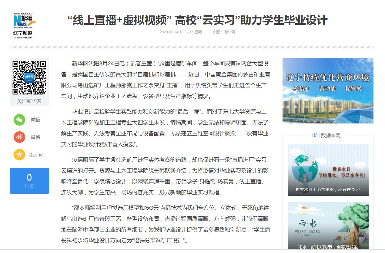 疫情阻隔了学生通往选矿厂进行实体考察的道路,却也促进着一条“直播进厂”实习云渠道的打开。资源与土木工程学院院长韩跃新介绍,为将疫情对毕业实习及设计的影响降至最低,学院精心设计,以网络连通千里,带领学子“身临”矿场实景,线上直播、连线大咖,为学生带来一场场内容充实、形式新颖的毕业实习课程。