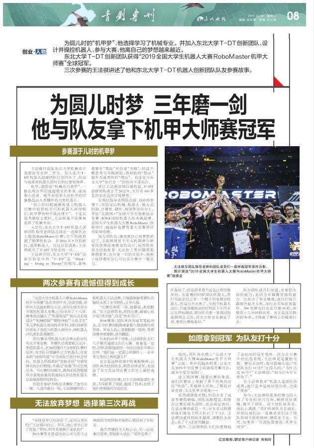 在王法祺看来“机器人是团队的成果,他只是幸运地站到台前,完成了使命”。
