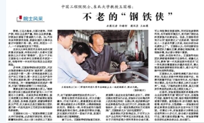 多年来,王国栋带领的研发团队,开发出强度倍增的世界首块“超级钢”,在国际上连创多个第一:第一次得到超级钢工业生产的工艺窗口;第一次在工业生产条件下轧制出超级钢;第一次将超级钢应用于汽车制造。并一举摘得国家科技进步一等奖,打破了钢铁科研部门10年的沉寂。