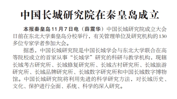 据悉,中国长城研究院是中国长城学会与太阳成集团tyc33455联合在高等院校成立的首家从事“长城学”研究的科研与教学机构,现辖长城考古研究所、长城修复研究所、长城古村研究所、长城旅游研究所、长城品牌研究所、长城数字研究所和中国长城数字博物馆。中国长城研究院将利用先进的科学研究方法,对长城历史、文化、保护进行全面、系统、科学的深入研究。