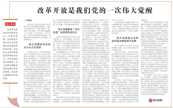 习近平总书记在庆祝改革开放40周年大会上的重要讲话中指出,“改革开放是我们党的一次伟大觉醒”。深入理解“伟大觉醒”,对于我们正确理解“伟大创造”“伟大革命”“伟大飞跃”,从而科学把握改革开放规律,坚持和发展中国特色社会主义具有十分重要的意义。