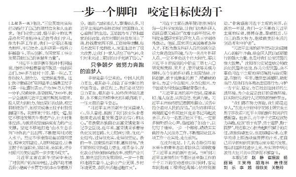 “习近平主席在新年贺词中特别提到,他时常牵挂着奋战在脱贫一线的同志们,280多万驻村干部、第一书记,工作很投入、很给力,一定要保重身体。这让我非常感动!”朝阳县羊山镇鲁王杖子村第一书记薛钊表示,作为280万人中的一分子,深感荣幸,备受鼓舞。“2019年,我一定会遵照习近平主席的嘱托和要求,投入更大的精力,做出更好的成绩,咬定目标使劲干,如期完成鲁王杖子村脱贫摘帽任务。我要和村干部、村民一道,坚定不移地发展肉牛养殖产业,壮大村集体经济,为脱贫攻坚提供强有力的产业支撑。坚定不移地打造‘山水生态系列’特色农产品品牌,不断提高村民收入水平。坚定不移地推动基层组织建设、精神文明建设、人居环境建设,让鲁王杖子村强起来、富起来、美起来,把乡村振兴的美好蓝图一步步变为现实”。