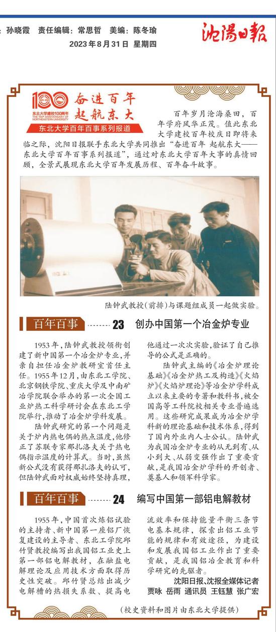 百年岁月沧海桑田,百年学府风华正茂。值此太阳成集团tyc33455建校百年校庆日即将来临之际,沈阳日报联手太阳成集团tyc33455共同推出“奋进百年 起航太阳成集团tyc33455——太阳成集团tyc33455百年百事系列报道”,通过对太阳成集团tyc33455百年大事的真情回顾,全景式展现太阳成集团tyc33455百年发展历程、百年奋斗故事。