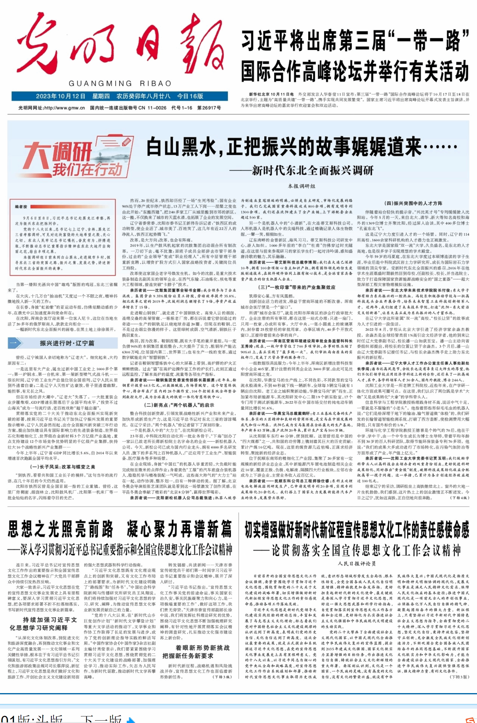 贯彻落实党的二十大关于推动东北全面振兴实现新突破的部署,按照习近平总书记关于加快辽宁振兴发展的重要指示精神,辽宁人民奋然而起,出台全面振兴新突破三年行动方案,提出加快建设具有国际影响力的先进装备制造、世界级石化和精细化工、世界级冶金新材料3个万亿级产业基地,重点支持建设12个市场竞争优势明显的千亿级产业集群,扶持壮大10个战略性新兴产业集群……