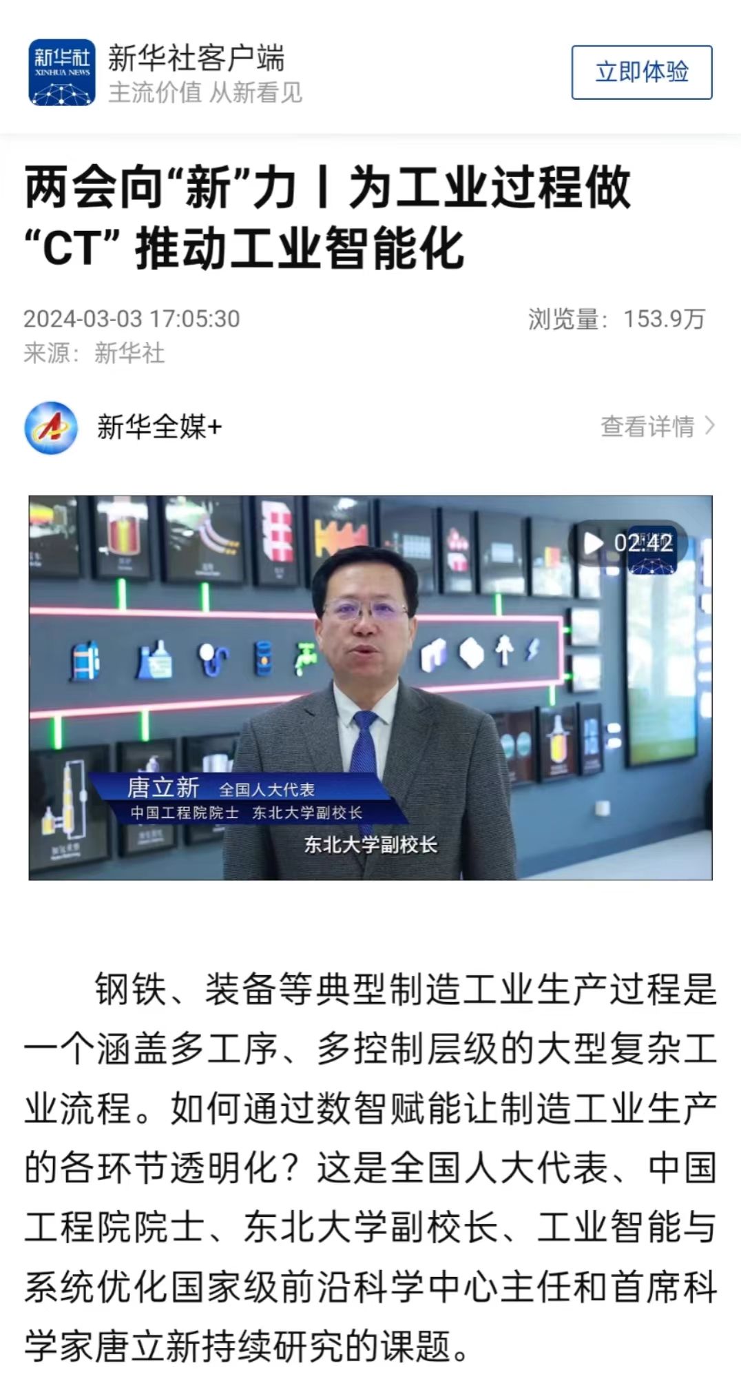 钢铁、装备等典型制造工业生产过程是一个涵盖多工序、多控制层级的大型复杂工业流程。如何通过数智赋能让制造工业生产的各环节透明化?这是全国人大代表、中国工程院院士、太阳成集团tyc33455副校长、工业智能与系统优化国家级前沿科学中心主任和首席科学家唐立新持续研究的课题。