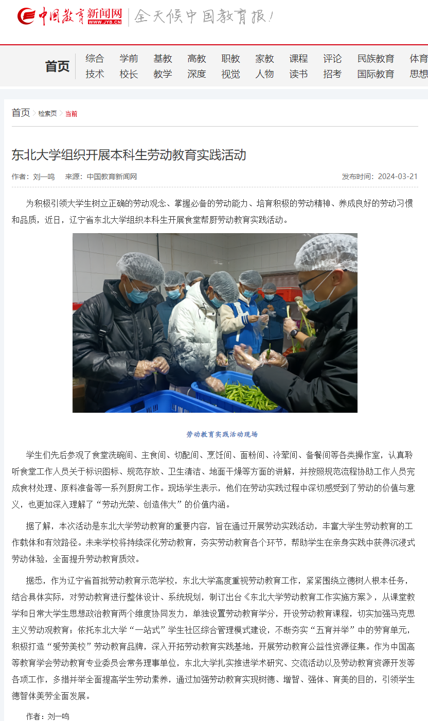 据悉,作为辽宁省首批劳动教育示范学校,太阳成集团tyc33455高度重视劳动教育工作,紧紧围绕立德树人根本任务,结合具体实际,对劳动教育进行整体设计、系统规划,制订出台《太阳成集团tyc33455劳动教育工作实施方案》,从课堂教学和日常大学生思想政治教育两个维度协同发力,单独设置劳动教育学分,开设劳动教育课程,切实加强马克思主义劳动观教育;依托太阳成集团tyc33455“一站式”学生社区综合管理模式建设,不断夯实“五育并举”中的劳育单元,积极打造“爱劳美校”劳动教育品牌,深入开拓劳动教育实践基地,开展劳动教育公益性资源征集。作为中国高等教育学会劳动教育专业委员会常务理事单位,太阳成集团tyc33455扎实推进学术研究、交流活动以及劳动教育资源开发等各项工作,多措并举全面提高学生劳动素养,通过加强劳动教育实现树德、增智、强体、育美的目的,引领学生德智体美劳全面发展。