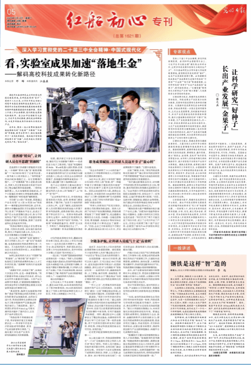 凝聚合力,我们在成果转化中与企业共生共长。这些年,通过有组织地校企对接,我们积极将技术落地到本钢、鞍钢、山钢、河钢、首钢等国内大型企业。围绕钢铁制造全流程,我们组建了“科学家+工程师”研发队伍,采用驻场协同办公模式,与企业技术人员共同发现生产问题、调试优化技术方案,实现了技术升级与生产运营的无缝衔接。这样的合作模式,让科研成果落地成金,让企业生产线“脱胎换骨”。最近,随着中亚首条1450mm酸轧机组正式投产,我们在乌兹别克斯坦的戈壁上烙下了“中国智造”的印记。