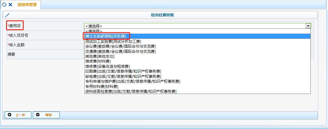 “费用项”处,选择“博士生助研津贴[劳务费]”;