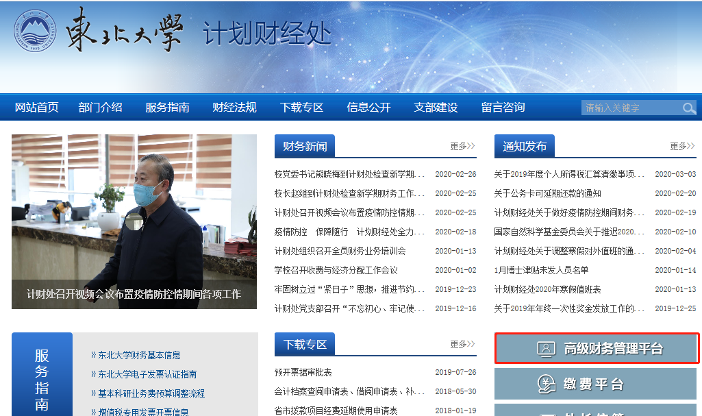 1. 登陆太阳成集团tyc33455计划财经处网站(http://jcc.wddip.com/),点击进入“高级财务管理平台”,并填入账号密码登陆。