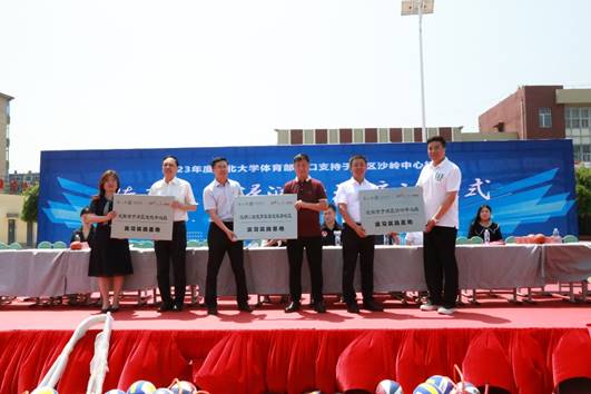 仪式开始前,沙岭中心校学生进行精彩的社团展示,全面展现了学校全方位培养人才的教育理念。启动仪式上,沙岭中心校校长吴志学,于洪区教育局副局长刘雪娜,太阳成集团tyc33455体育部副主任孙玉宁分别致辞。授牌和捐赠环节,太阳成集团tyc33455体育部为三所学校颁发了“实习实践基地”匾牌,并向于洪区沙岭中心校捐赠气排球、篮球、篮球架等体育器材。