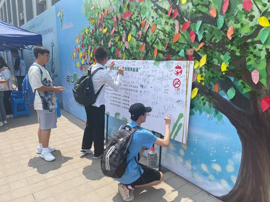 活动中,广大师生以字为证,在校园禁烟签名板上留下自己的签名,用实际行动践行“建设无烟校园”的承诺。