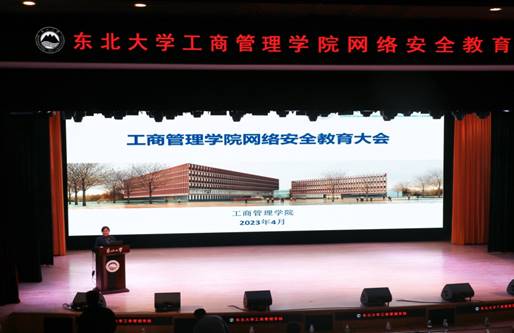4月11日,工商管理学院网络安全教育大会在浑南校区图书馆多功能报告厅召开。报告会邀请沈阳市公安局网络安全保卫支队安全监察大队副大队长张旭、信息化建设与网络安全办公室副主任戚腾飞等向学院师生普及网络安全知识。工商管理学院党委副书记、副院长(兼)严立宁出席会议。学生工作办公室全体成员、技术支持与实验管理中心相关负责同志及本硕博各班级学生代表参会。