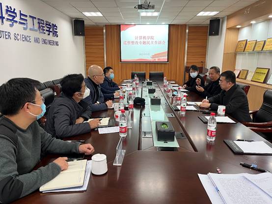 3月10日上午,计算机科学与工程学院在信息学馆B320会议室召开巡察整改专题民主生活会,学院全体领导班子成员参加了会议,校党校常务副校长、机关党委书记(兼)、党委组织部副部长(兼)初青松列席会议。会议由学院党委书记邸馗主持。